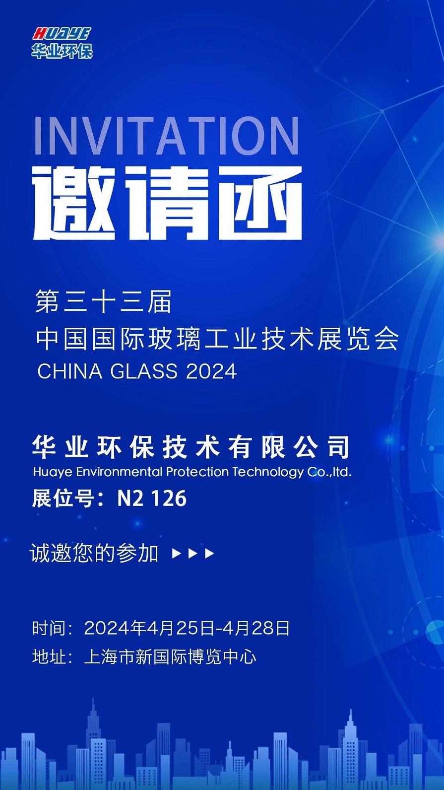 The 33rd China International Glass Industry Technology Exhibition (China Glass 2024) will be held on April 25-28, 2024 in Shanghai New International Expo Center. Huaye Environmental Protection Technology Co., Ltd. will bring glass deep-processing wastewater treatment equipment and system solutions to this exhibition, Booth No. N2 126, and sincerely invites new and old customers and friends at home and abroad to visit and communicate with us, and lay a solid foundation for future cooperation.